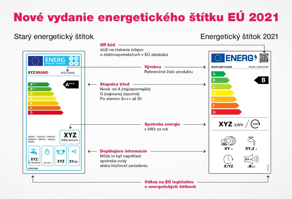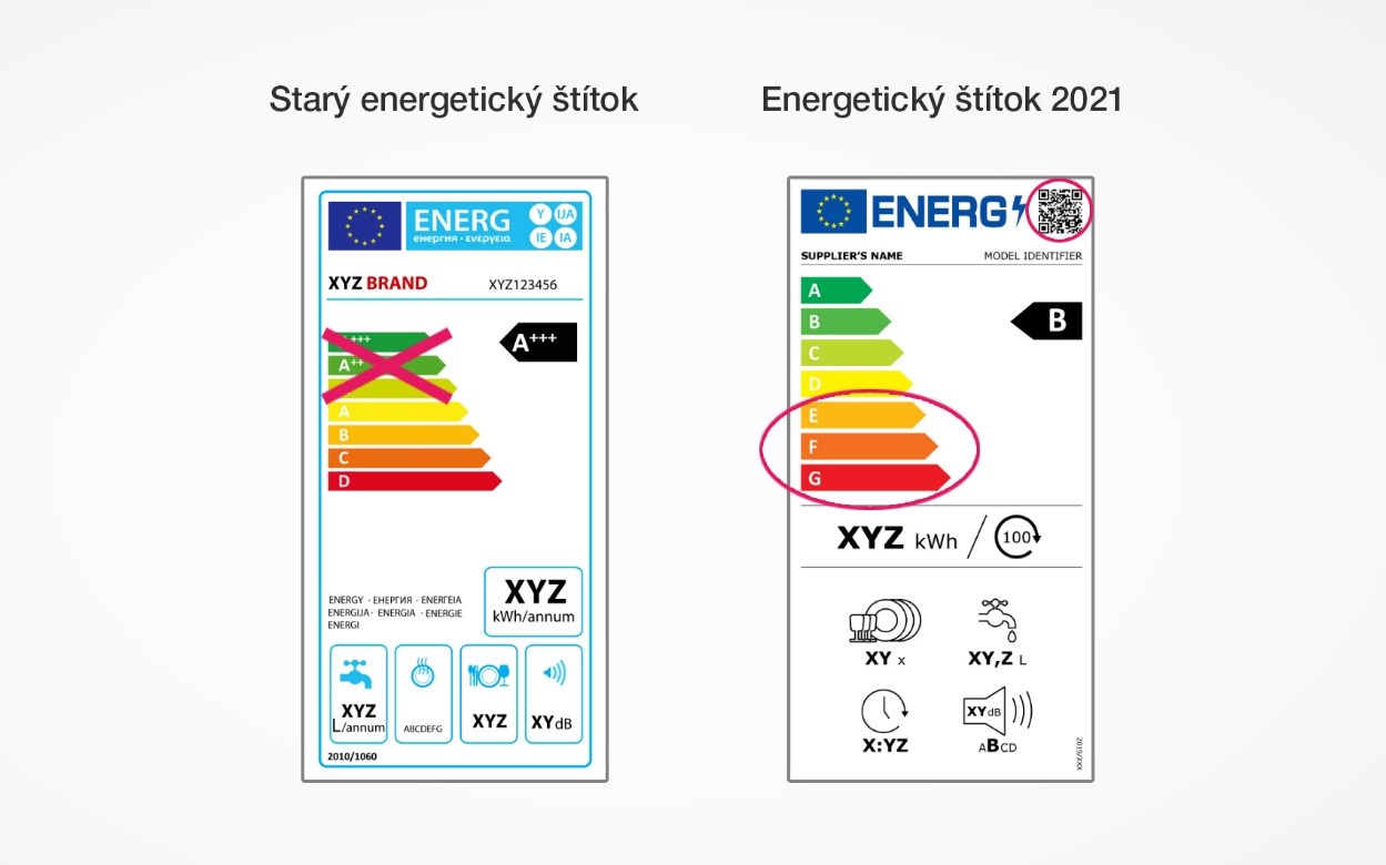 - Od 1. marca 2021 sa budú novým štítkom označovať chladničky, mrazničky, práčky a kombinované práčky so sušičkou, umývačky riadu, televízory, monitory a elektronické displeje. Ďalšie kategórie si prejdú obdobnou zmenou v budúcnosti
