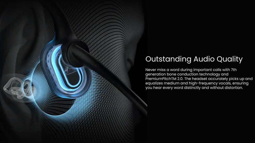 Vďaka pokročilej technológii Bone Conduction 7. generácie a duálnemu mikrofónu s potlačením šumu si budete môcť užívať krištáľovo čisté hovory. S Qualcomm CVC technológiou sa hluk na pozadí zníži o 98 %, takže budú vaše konverzácie vždy jasné a zreteľné – aj v rušnom prostredí. Bez ohľadu na to, či telefonujete alebo sa zúčastňujete videokonferencií, nikdy nebudete mať problém sa počuť. Ochrana IP55 zaistí, že sa nemusíte báť postriekania alebo poliatia slúchadiel.